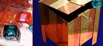 Mocht de schrijver geconfronteerd worden met een naderend schrijversblok, dan kan hij de schatkist openen. Door het deksel te openen valt de speciale dobbelsteen uit de cassette in het deksel. En daarmee begint het spel. Uit de dobbelstenen van de schatkist kan naar voorkeur een keuze worden gemaakt, om samen met de dekselsteen (de magie van de regel van Jan Hanlo's gedicht: Zo meen ik dat ook jij bent) een worp te doen met in totaal 5 stenen. Met de woorden die boven rollen en door de betovering van het licht in het gekleurde glas, kunnen al zoekend nieuwe onverwachte zinnen ontstaan."